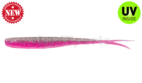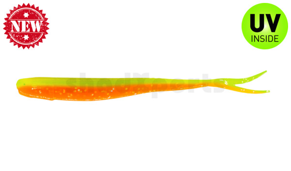 Here are two colors molded into each other. In some added Glitter or Flakes. Please mind, that due to the Injection-procedure in manufacturing no bait looks exactly like the other one. The used pearl-shades (goldpearl, white-pearl, blue-pearl, pearl) are all as already described in the text of the „regular-color-table“!
